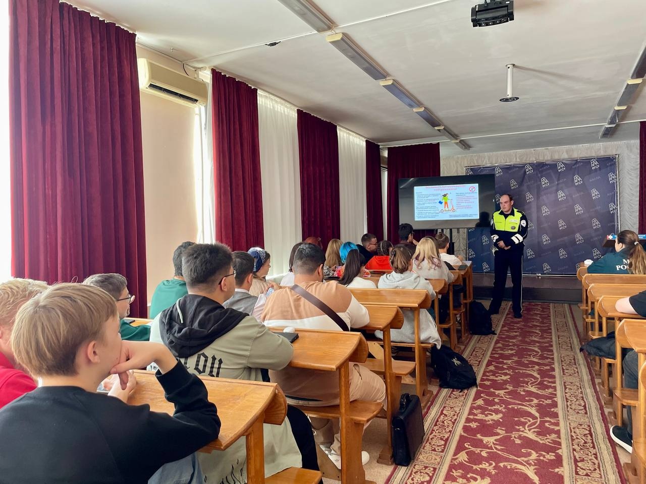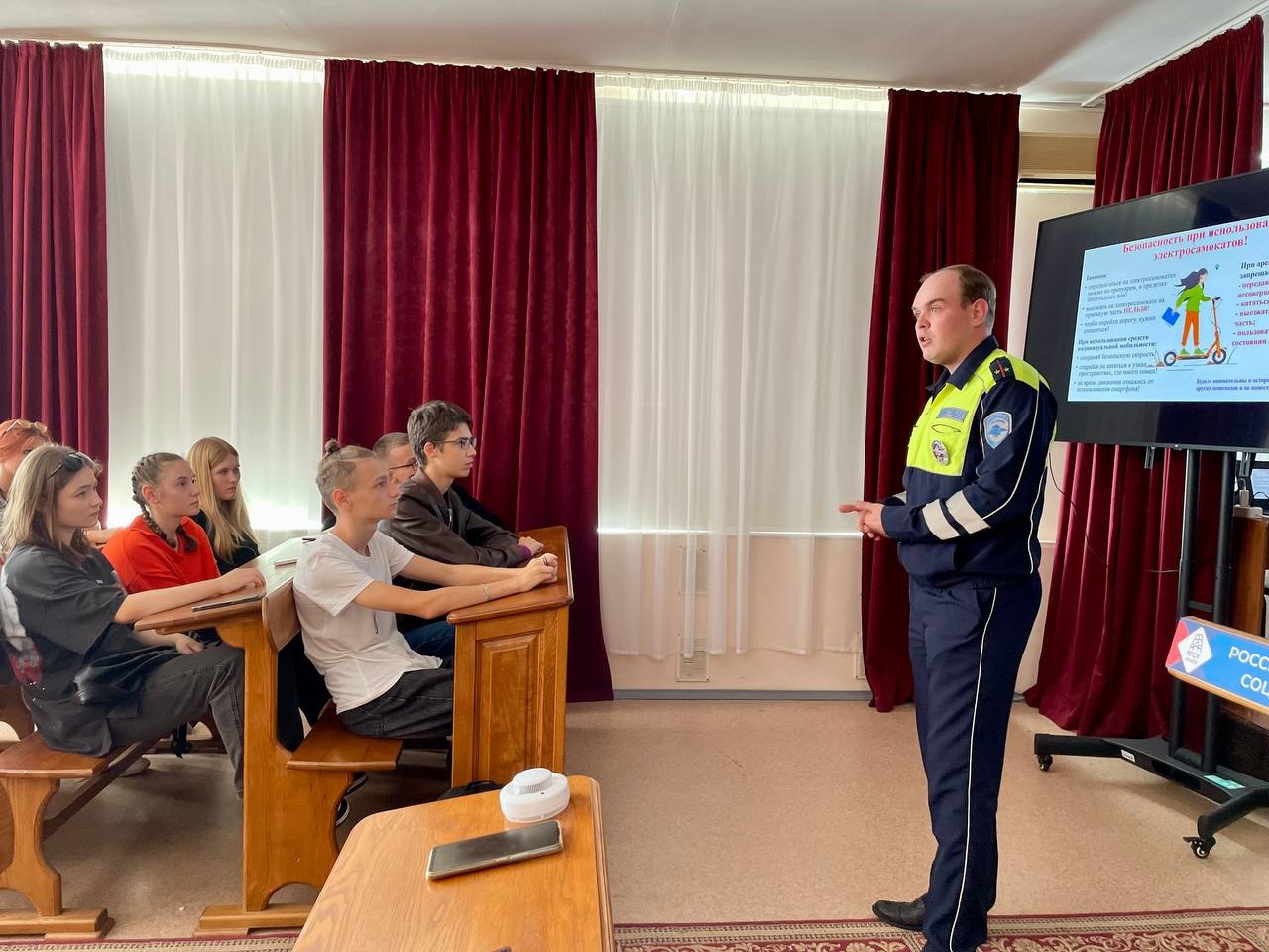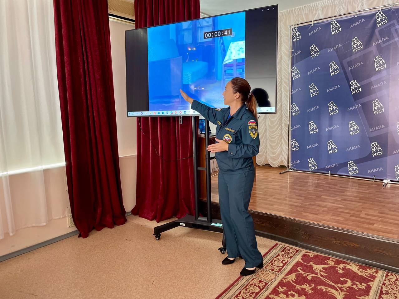 Начальник Анапской пожарно-технической выставки Главного управления МЧС России по Краснодарскому краю рассказал студентам о правилах пожарной безопасности, о правилах поведения возле водоёмов и во время пожаров, а также о правилах личной безопасности.