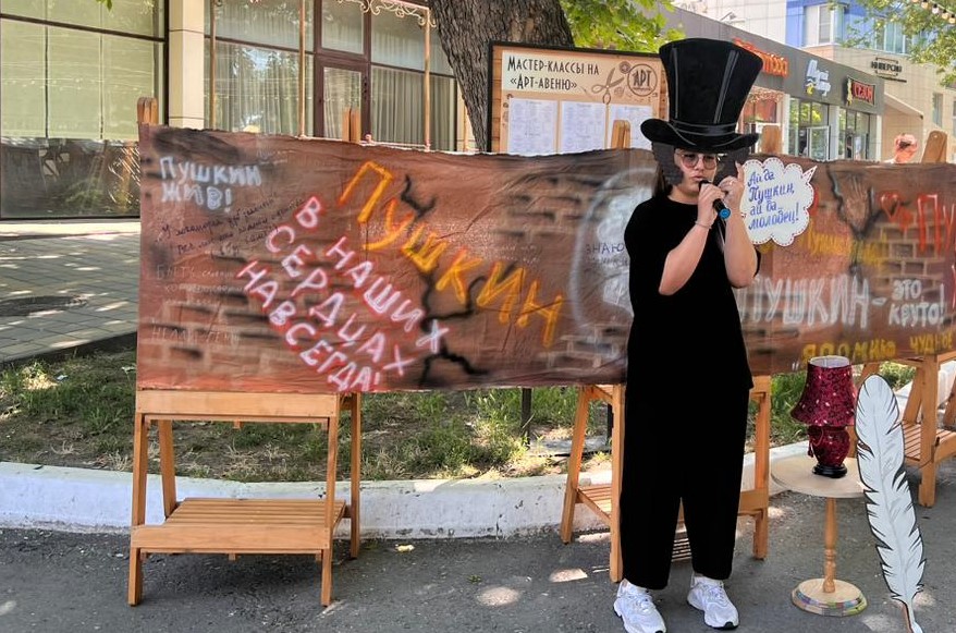 «Свободный микрофон» в сквере им. Гудовича и «День Пушкина» на Арт авеню. Студенческая молодёжь Первого социального в Анапе Манан Киракосян, Арина Айрапетян, Елизавета Гагарина, Анастасия Панферова, Дарья Мисюра зачитали стихотворения русского поэта и провели для гостей курортного города викторину, вопросами которой стали факты о жизни Александра Сергеевича. Победители получили сладкие и памятные подарки от филиала РГСУ в г. Анапе.