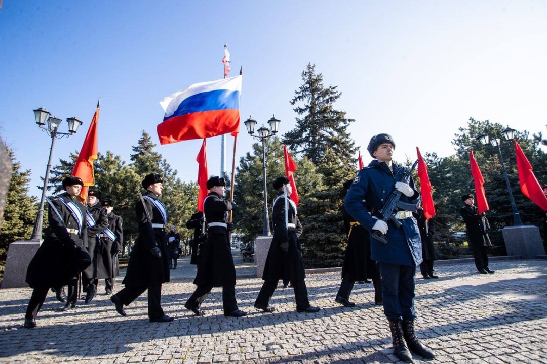 Под звуки государственного гимна к стеле «Город воинской славы» вынесли флаг Российской Федерации и Знамя Победы. Была объявлена минута молчания в память о героях, отдавших жизни за Родину в годы Великой Отечественной, Афганской и Чеченских воин и в настоящие дни, когда продолжается специальная военная операция.