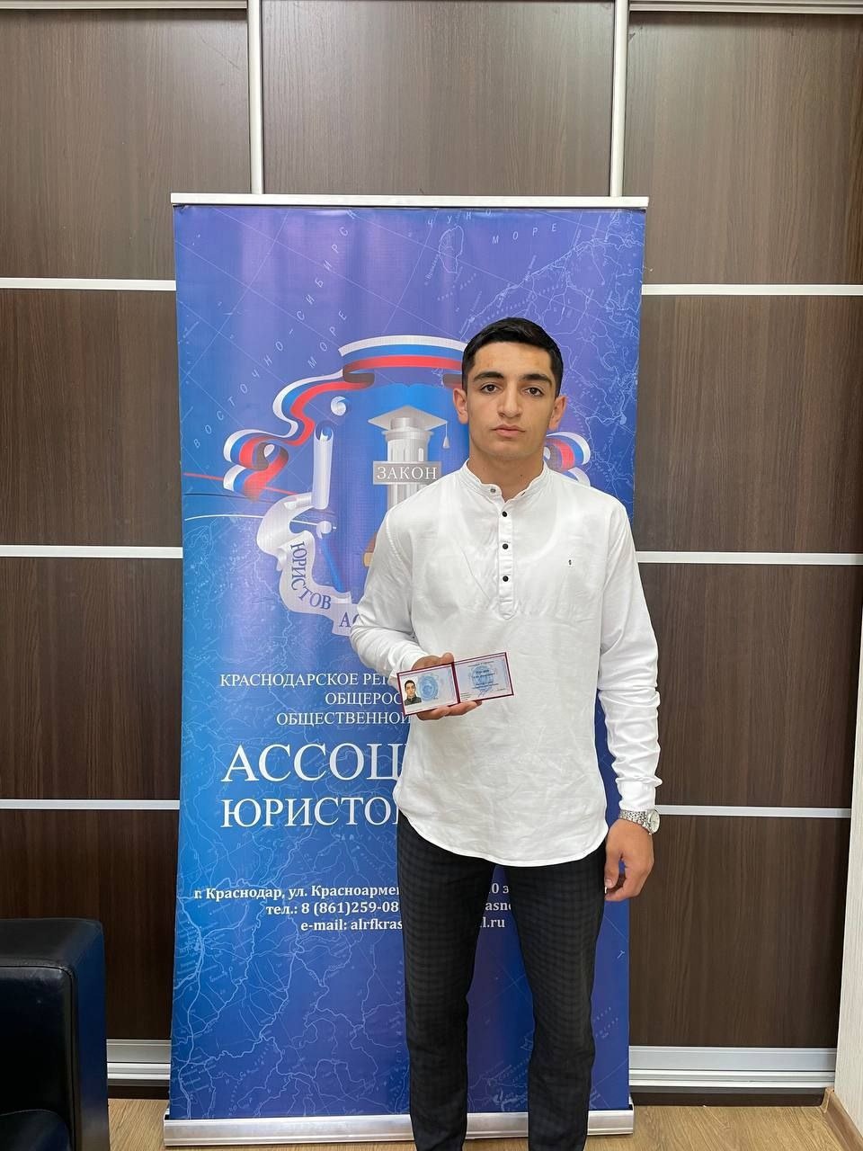 Студент филиала РГСУ в г. Анапе стал членом ассоциации юристов России