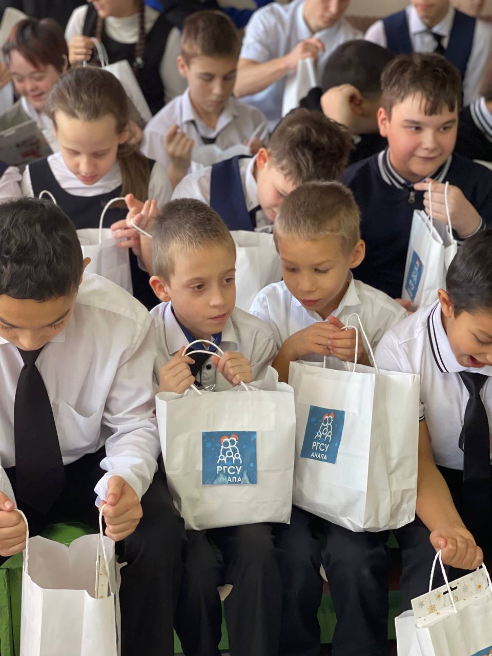 Детки встретились со своими любимыми новогодними героями Дедом Морозом и Снегурочкой и получили подарки от филиала РГСУ в г. Анапе!