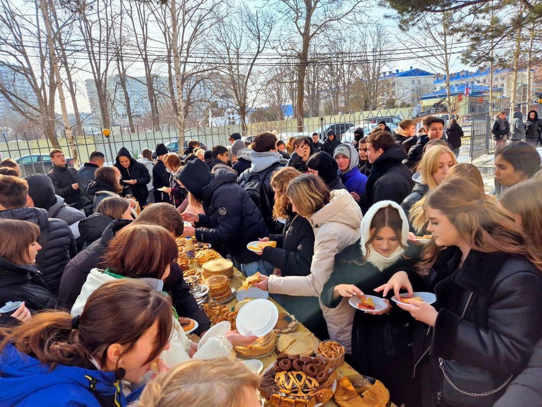 В 11 часов состоялось основное празднование «Масленицы». Приготовленный грандиозный стол от сотрудников, студентов и их родителей, традиционно включал в себя угощения, которыми мы встретили гостей! Сегодня мы раздали более 1000 блинов!!!