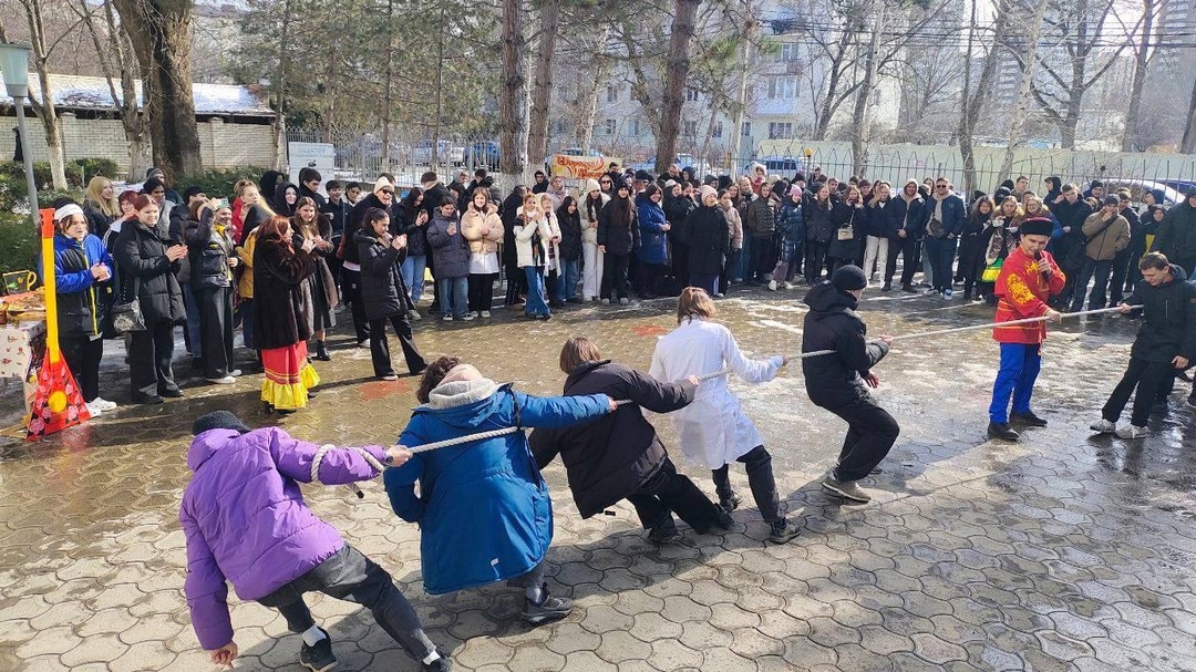 Гуляния продолжились различными конкурсами: «Кто дальше бросит бревно», соревнованием на смекалку, где нужно было назвать, как можно больше существующих начинок для блинов и, конечно, традиционным перетягиванием каната. Ближе к концу праздника была проведена лотерея. Из лототрона наш выпускник, Виктор Баркалов, ведущий сегодняшнего мероприятия, достал номера счастливых билетов, обладатели которых получили призы. Главный приз, фирменная толстовка РГСУ, досталась студентке 3 курса Колледжа Екатерине Ульдановой.