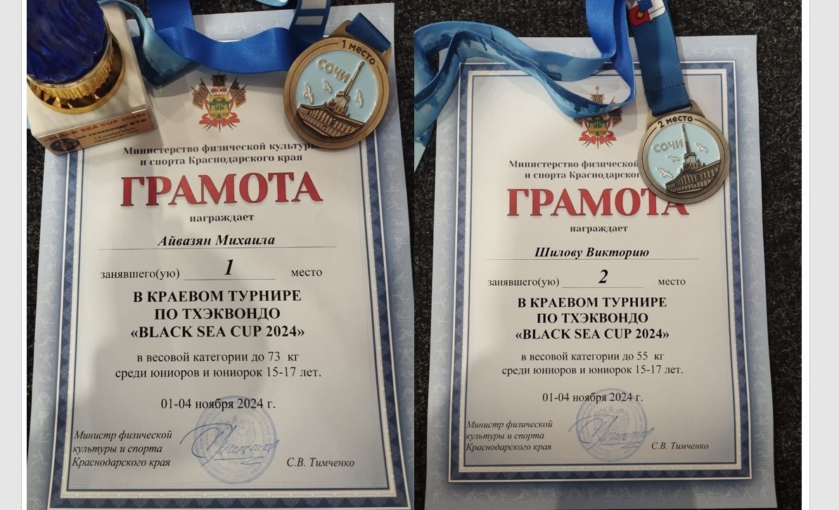 В турнире приняли участие более 800 спортсменов из различных городов России и соответственно Армении. Копилка анапской команды пополнилась четырьмя медалями, две из которых у наших студентов! В шаге от чемпионства остановилась студентка 1 курса специальности «Юриспруденция» Виктория Шилова, завоевав серебряную медаль, а победителем турнира и обладателем «Кубка Черного моря 2024» стал Михаил Айвазян, студент 2 курса специальности «Право и организация социального обеспечения».